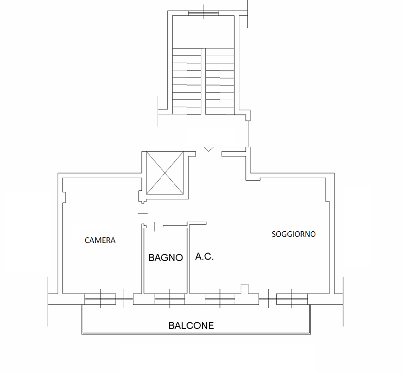 L'immobile è composto da: ingresso, soggiorno con cucina a vista, camera matrimoniale, bagno e balcone.